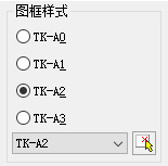 图块名称为TK-A2,块基点在范围594×420的左下角(如果提示此图纸存在原块名,为块冲突,先AB将“原配置图框名称”改变后再操作)