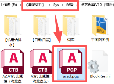 .pgp文件夹路径:《海龙软件》\Sys\配置\您的配置\acad.pgp