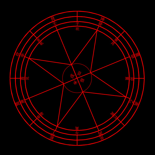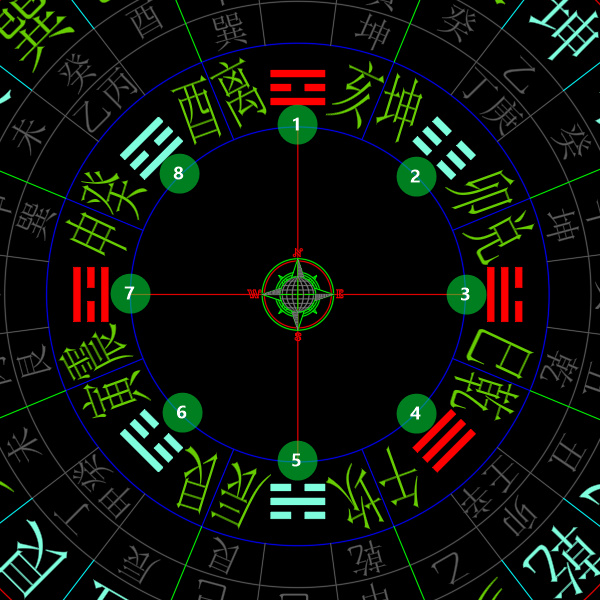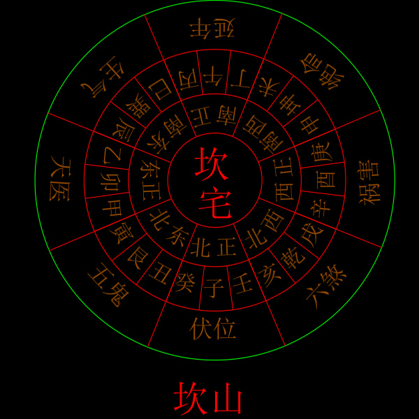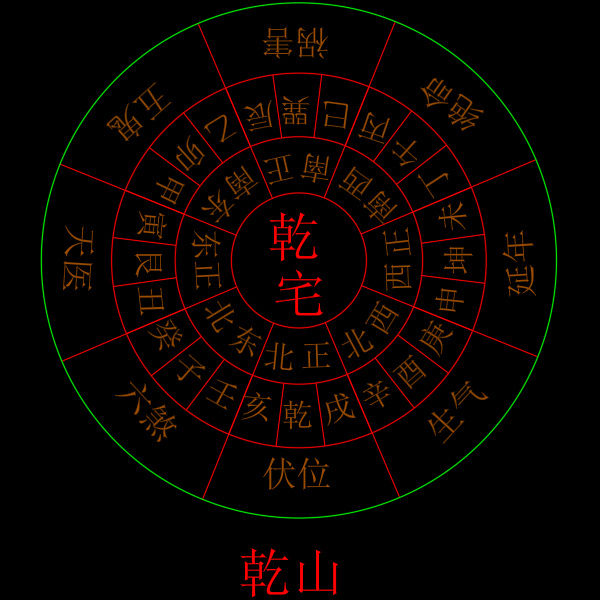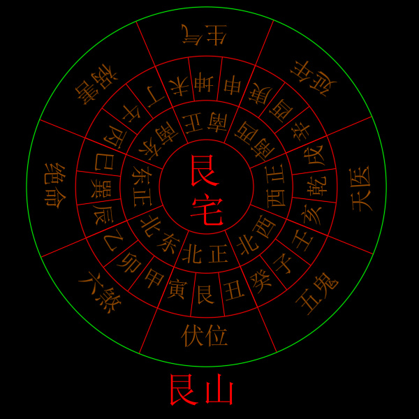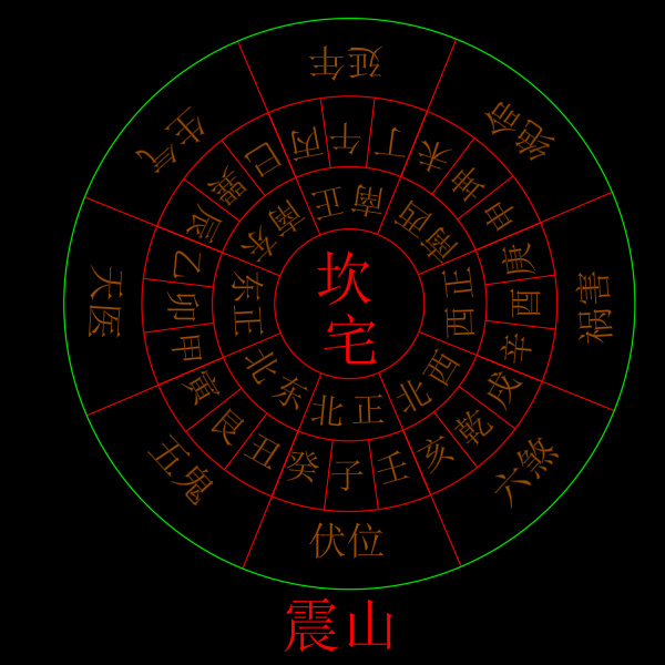 这是罗盘的核心层,由八天干、十二地支和四维卦(乾、坤、艮、巽)共同组成24个方位,是风水断事的基础吧