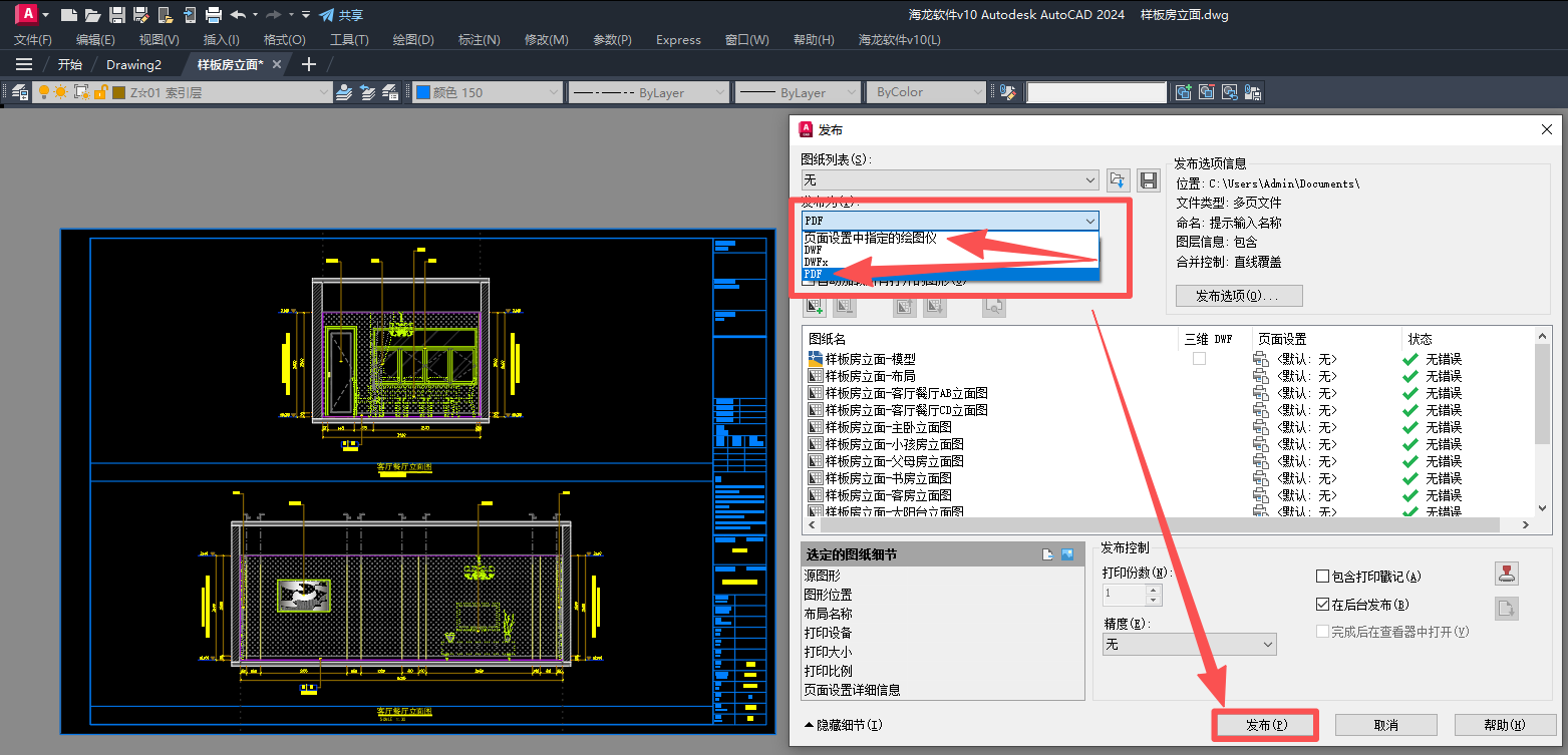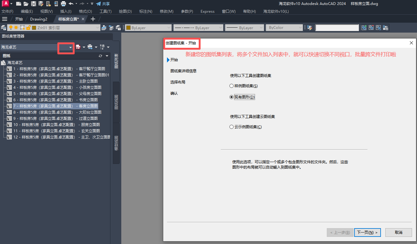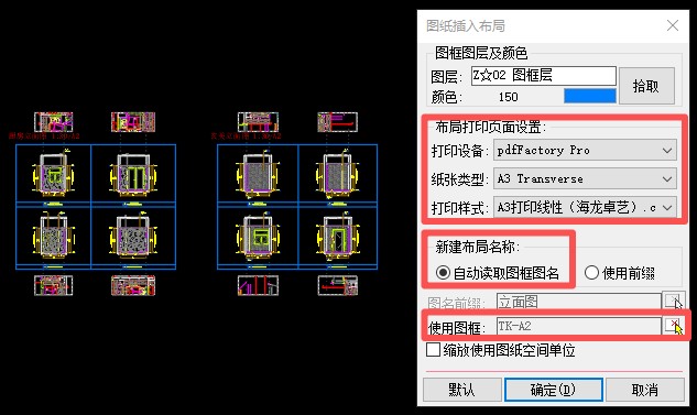 功能:将模型包含图框的已完成图纸,批量进行布局图纸集化,并根据BJ设置给所有图纸设置好打印样式和打印机,最后达到一键出图的效果