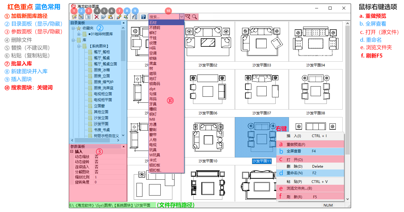 海龙最高频核心功能,用于平立面节点快速插入图块,以高效高质完成施工图绘制