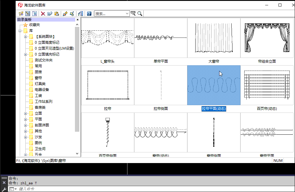 输入关键词,例如石材、铰链、窗帘等,则快速搜索路径下相关的图块