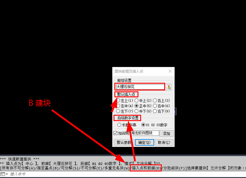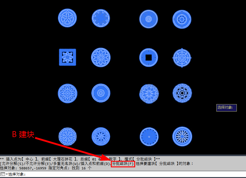 先将图块保持一定距离(可以全选看范围是否交集,避免批量建块成团),然后B建块前,拓展栏先设置好建块前缀,图块基点