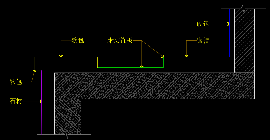 输入JBB后,选取基层线可批量生成,石材部分需要18厚细木工板DXB绘制