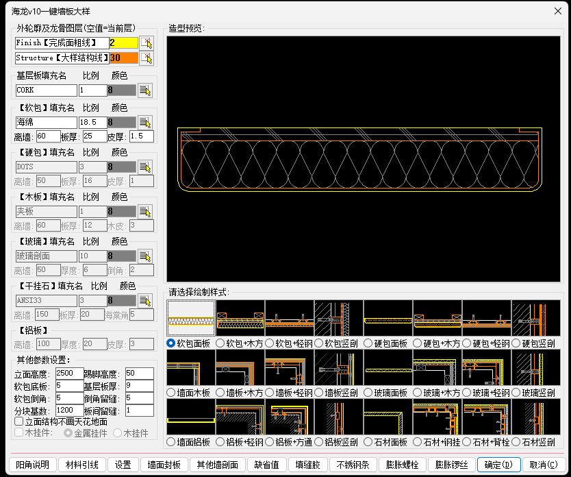 灵活选取,多段生成:夹板/石膏板/埃特板/A级防火板