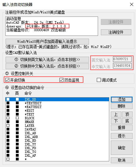 优势:CAD里面切换了英文输入法,不影响其他应用使用中文输入法