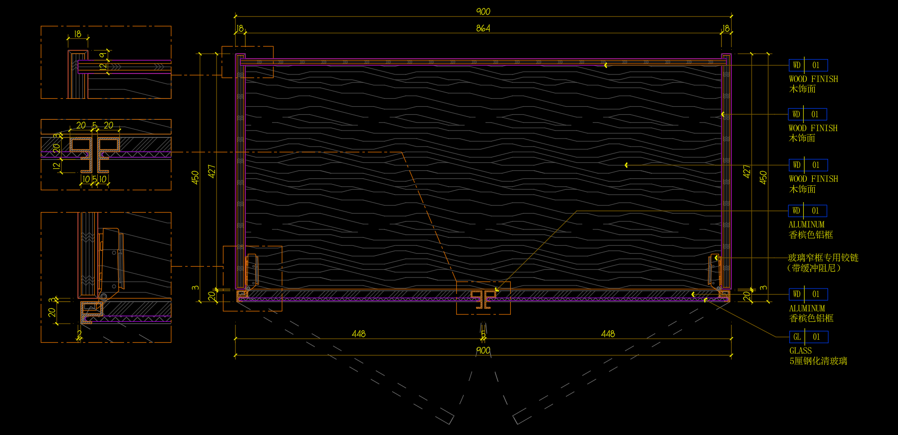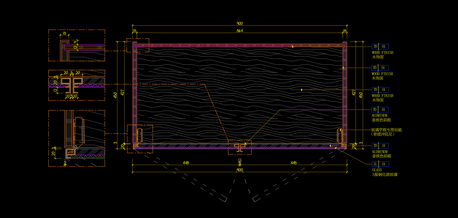 10MM极窄铝制柜门+木饰面柜体画法
