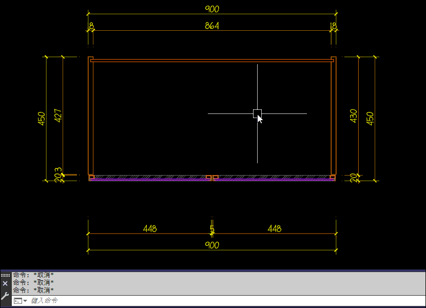 用GZZ绘制一个900mm长的内部构造柜子